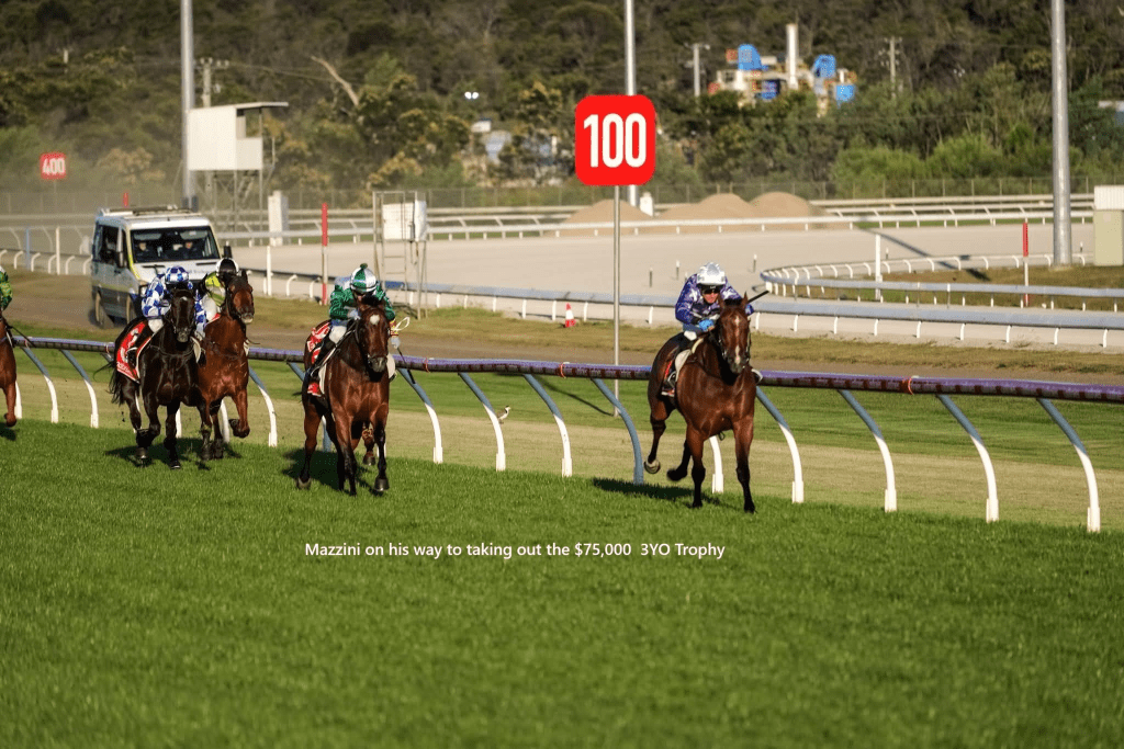Mazzini, a $145,000 yearling, has quickly stamped himself as another rising star. He made it three wins from only four starts when leading throughout to claim the $75,000 Three‑Year‑Old Trophy at Mowbray.